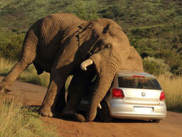صور.. فيل يداعب سيارة بـ«سفاري» فى جنوب أفريقيا